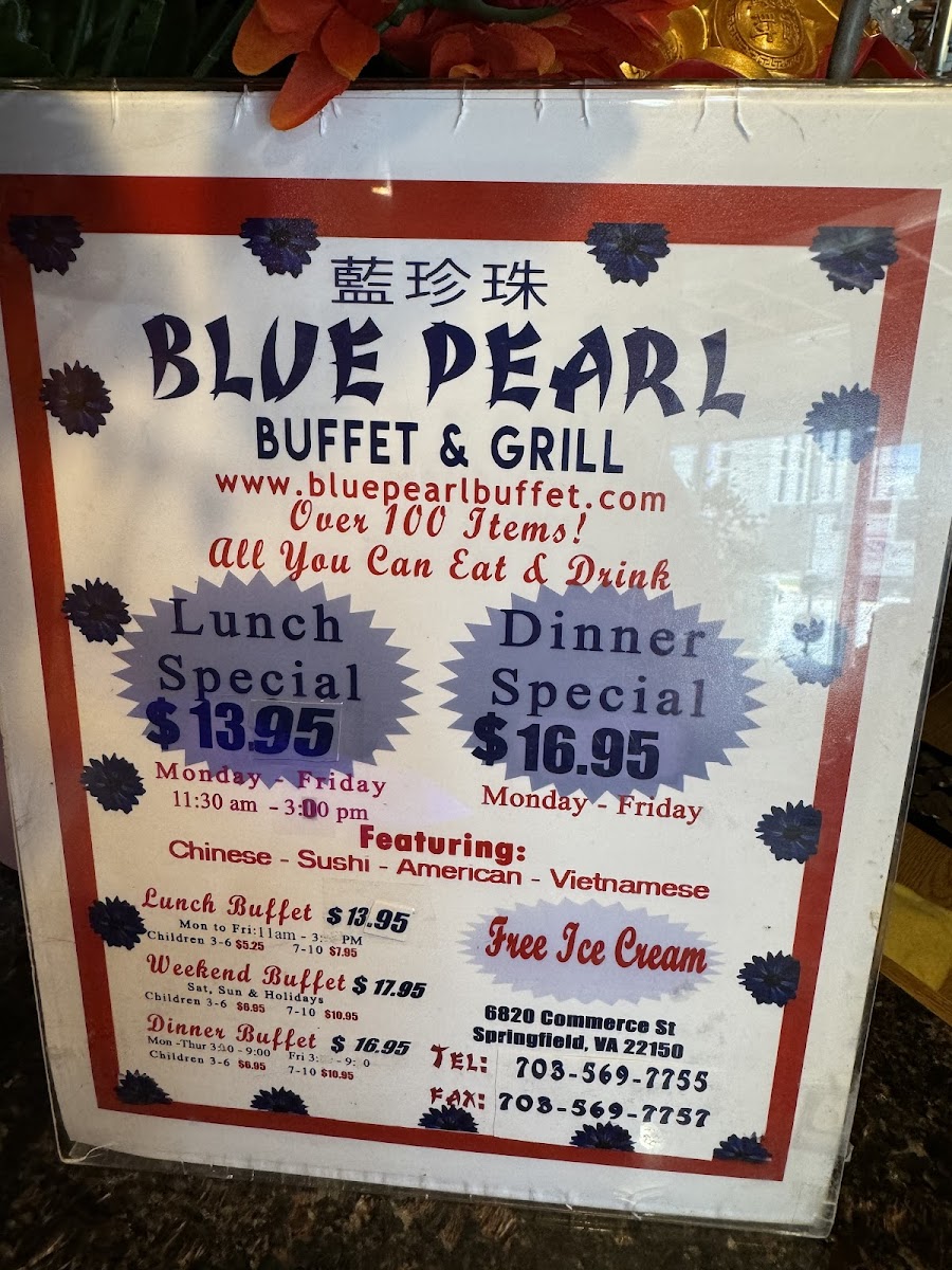 Located in Springfield, Virginia, Blue Pearl Buffet serves as a culinary haven for buffet lovers and fans of Chinese cuisine. The menu offers a delightful variety of choices, ensuring that each visit is unique. Start with their savory Dim Sum, explore their freshly prepared Sushi Rolls, or dive into an array of flavorful soups like the beloved Wonton Noodle Soup.